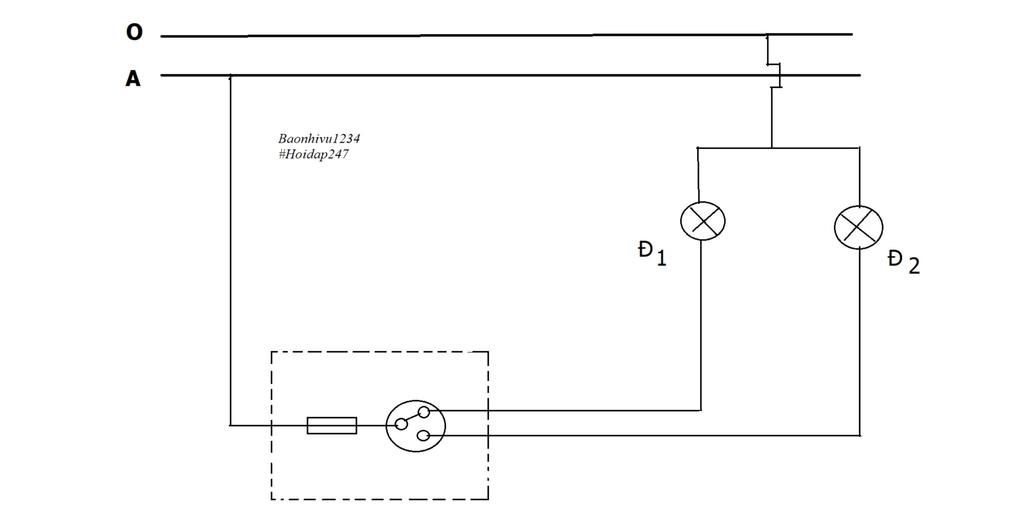 Sơ đồ lắp đặt mạch điện `1` cầu chì, `1` công tắc `3` cực điều khiển `2` đèn: