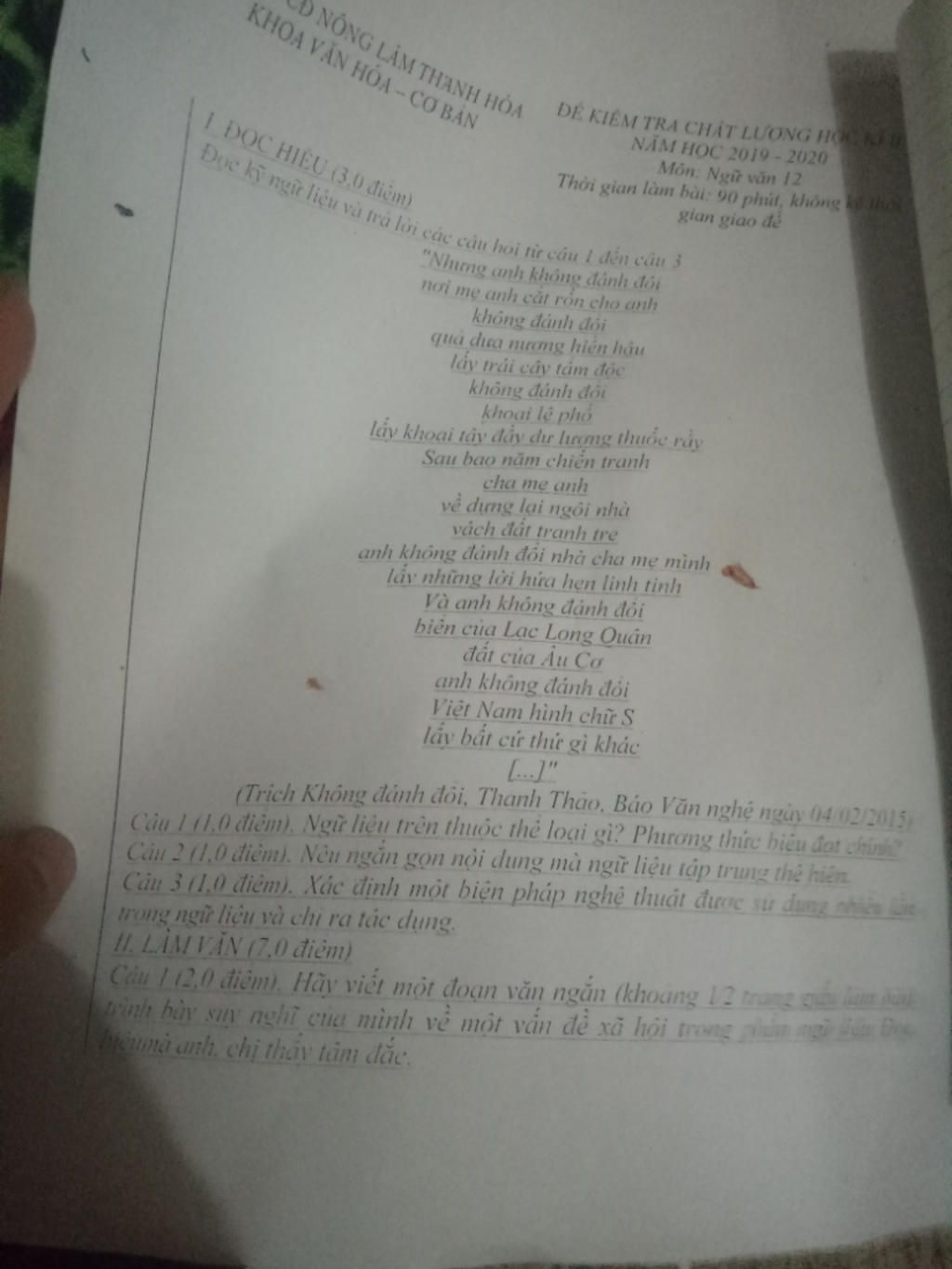 -Thể loại : Thơ tự do