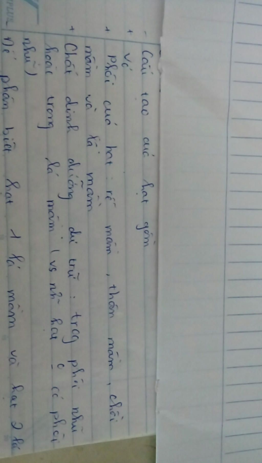 Hạt gồm ba bộ phận chính:vỏ hạt,phôi hạt gồm:lá mầm,thân mầm,chồi mầm,rx mầm và chất dụ chữ.