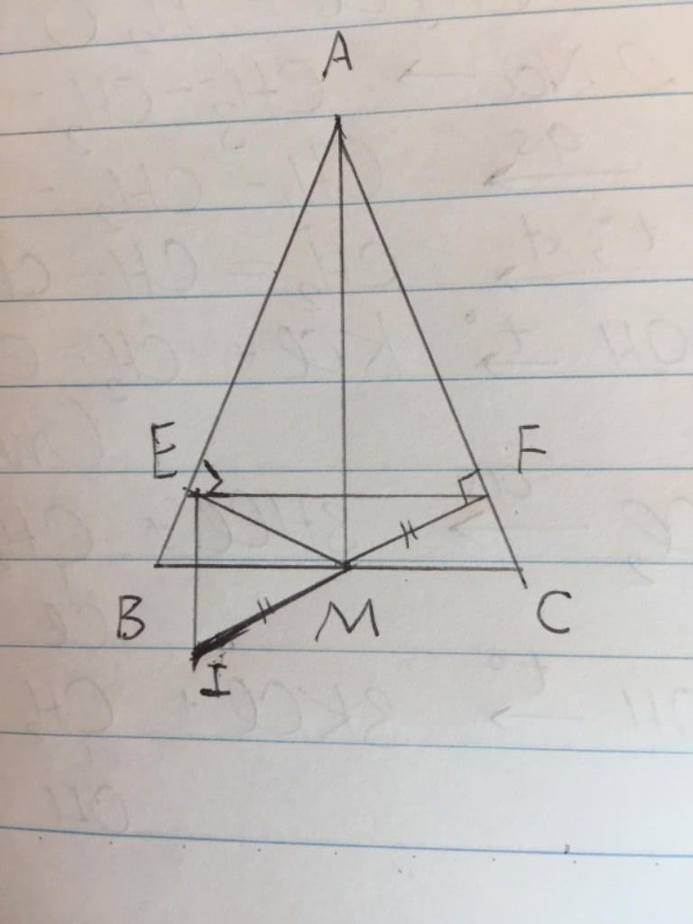 $\Delta$ AEF cân tại A có AM phân giác nên AM là đường cao.