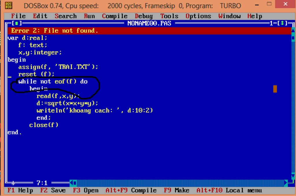 - While not eof(f) nghĩa là thực hiện các câu lệnh trong vòng lặp while và sẽ kết thúc khi con trỏ ở cuối file.