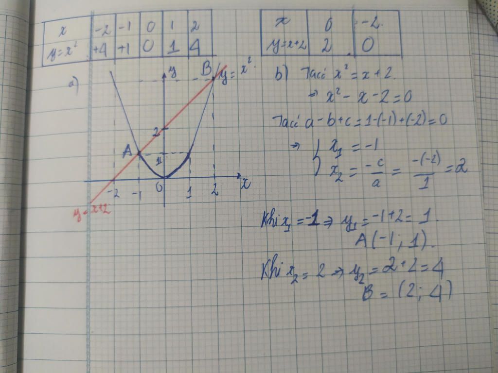 Vậy tọa độ giao điểm của (P) và (d) là $(2;4)$ và $(-1;1)$