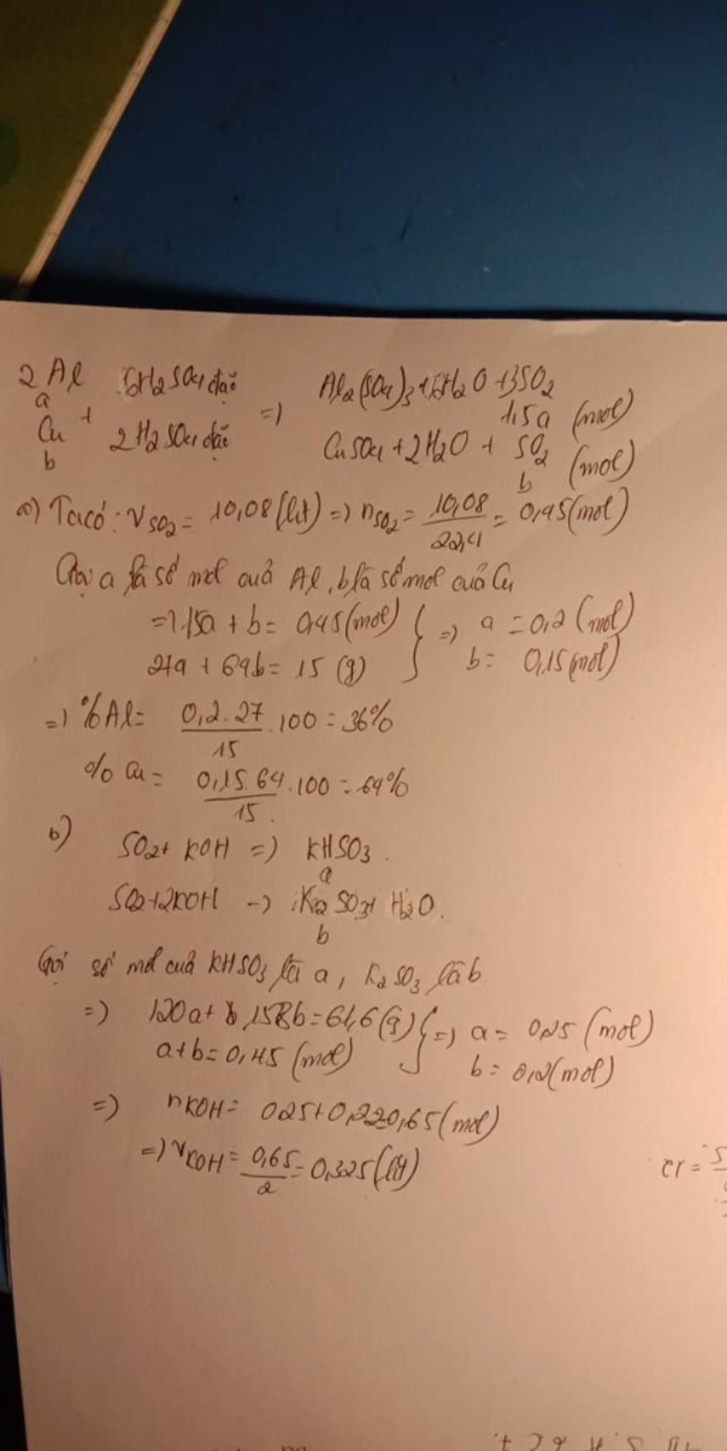 nKOH = 0,2 \times 2 + 0,25 = 0,65\,mol\\