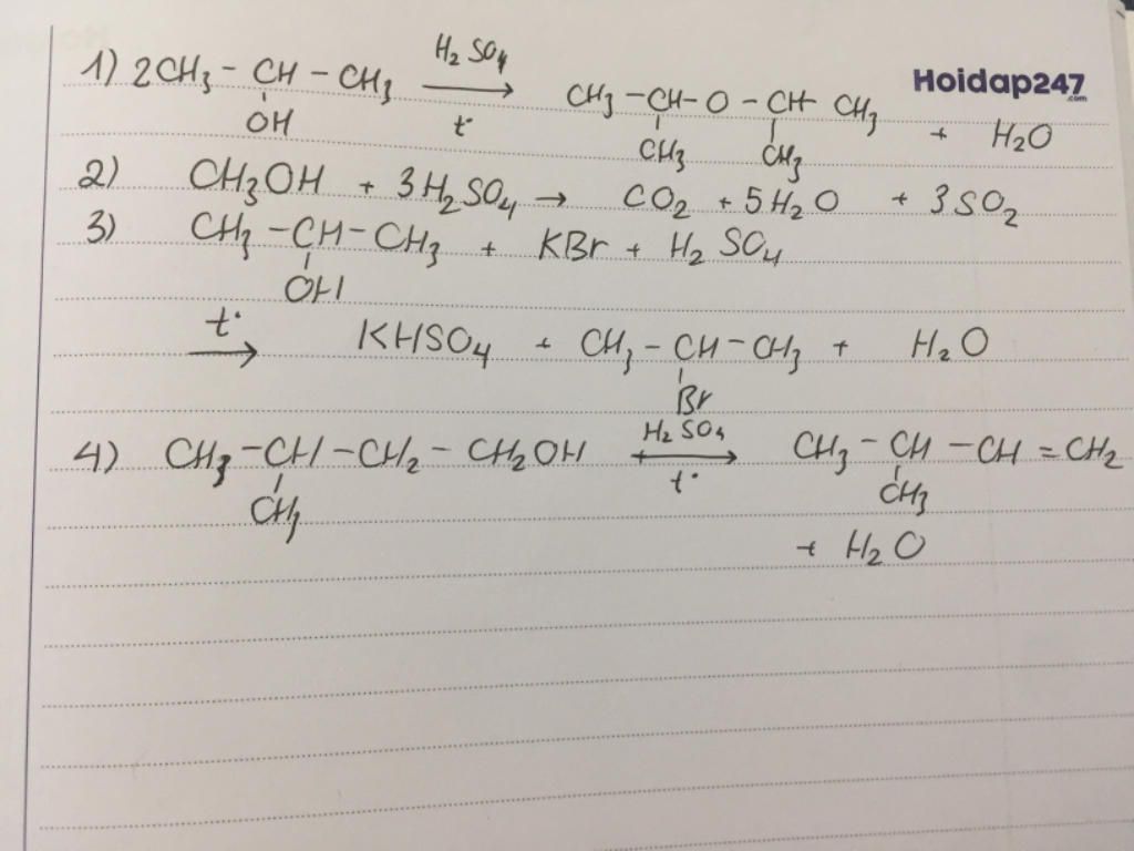 \(C{H_3} - CHOH - C{H_3} + KBr + {H_2}S{O_4}\xrightarrow{{}}C{H_3} - CHBr - C{H_3} (2-brom propan)+ KHS{O_4} + {H_2}O\)