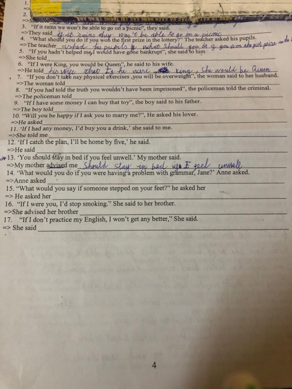 17) She said that if she hadn’t practiced her English, she wouldn’t get any better