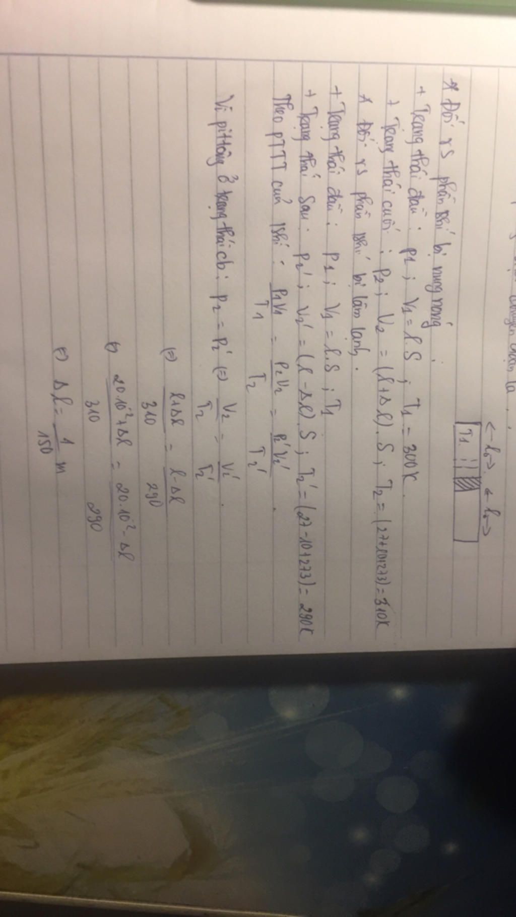 câu 2; một xilanh nằm ngang trong có pít-tông cách nhiệt pit-tông ở vị trí chia xi lanh thành 2 phần bằng nhau mỗi phần chứa một khối lượng khí như nhau ở nhiệt độ 27 độ C chiều dài của mỗi phần xilanh đến pit-tông là 30cm muốn pit-tông dịch chuyển 2cm thì phải đun nóng khí ở một phía lên thêm bao nhiêu độ?