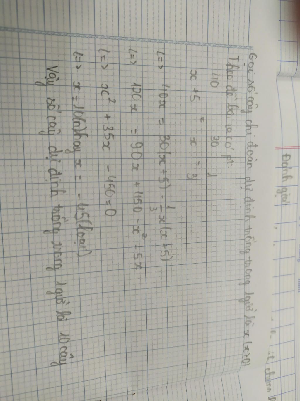 Vậy $x = 10$ hoặc $x = -45$ (loại)