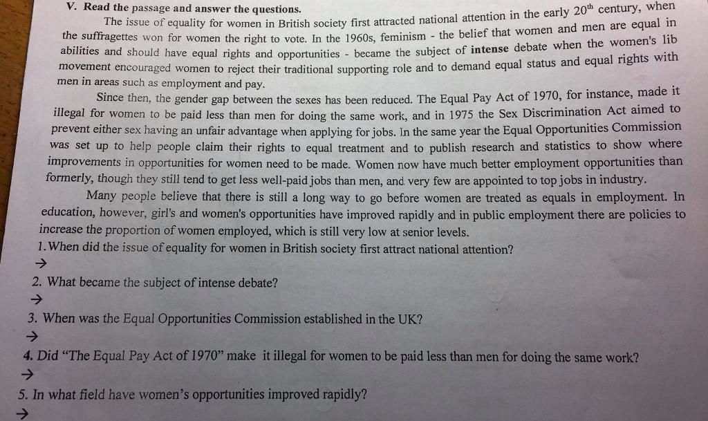 1. The issue of equality for women in British society first attracted national attention in the early 20th century.