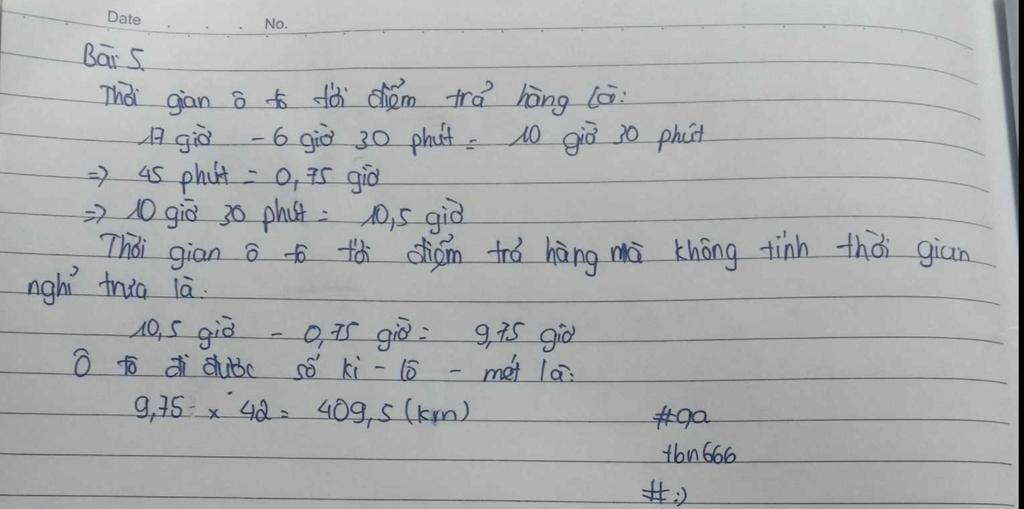 Thời gian ô tô khởi hành đến địa điển trả hàng là(không tính thời gian nghỉ trưa)