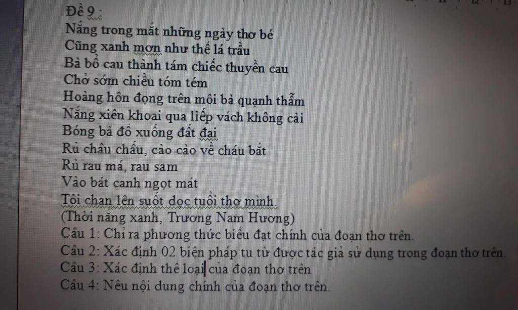 Câu 1 : phương thức biểu đạt chính là biểu cảm