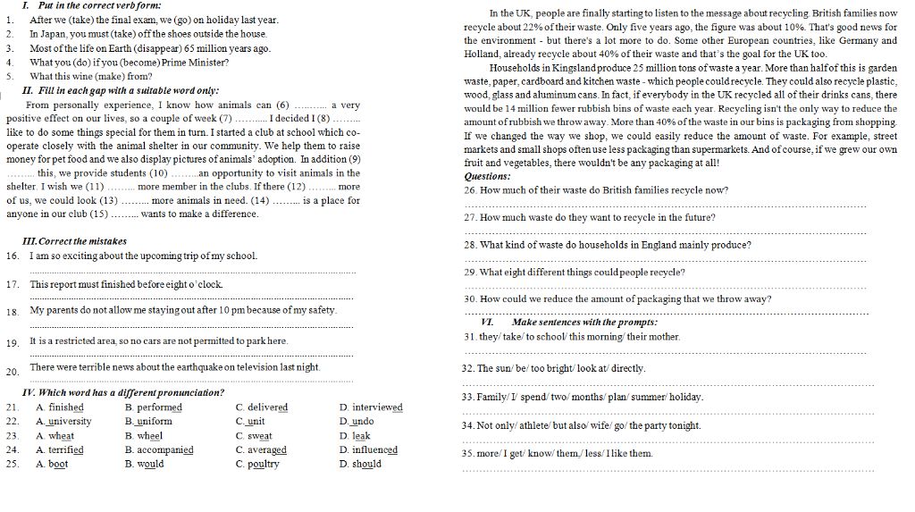 29.They are garden waste, paper, cardboard, kitchen waste, plastic, wood, glass, aluminum cans.