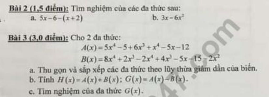 Bài 2 (1,5 điểm): Tim nghiệm của các đa thức sau: