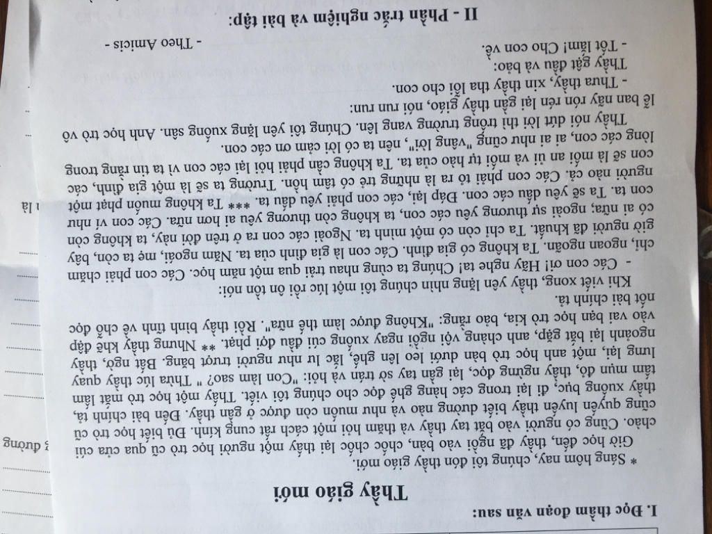 Câu 3: a. Thầy giáo rất quan tâm, lo lắng mọi học sinh