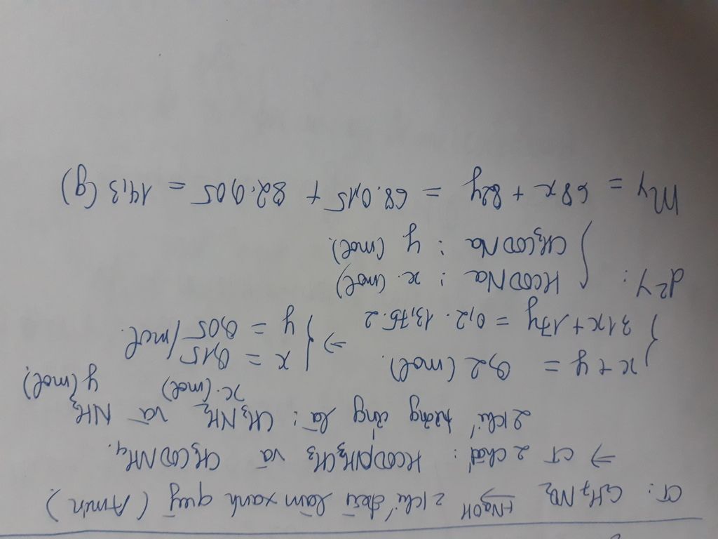cho hỗn hợp X gồm 2 chất hữu cơ có cùng CTPT C2H7NO2 tác dụng vừa đủ với dung dịch NaOH và đun nóng, thu được dung dịch Y và 4,48 lít hỗn hợp Z (ở đktc) gồm hai khí ( đều làm xanh quỳ ẩm). Tỉ khối hơi của Z đối với H2 bằng 13,75. Cô cạn dung dịch Y thu được khối lượng muối khan là ?