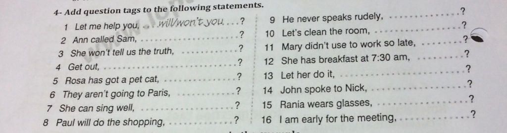7. Let’s → shall we? (rủ rê) / May I? (đề nghị giúp đỡ) / will you? (xin phép)