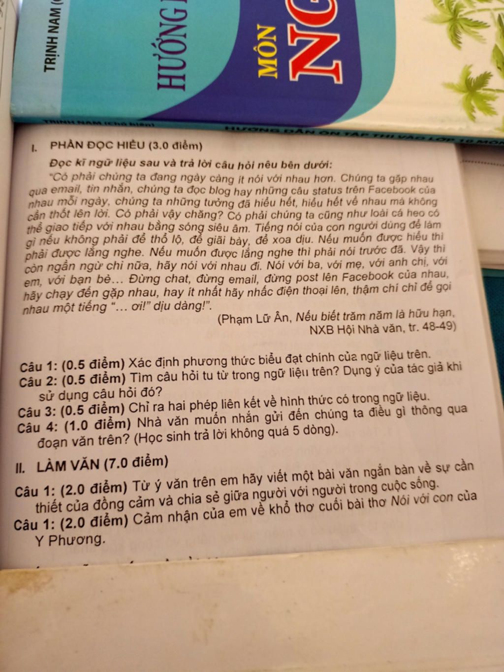 4. Qua đoạn văn trên, nhà văn muốn nhắn gửi đến chúng ta rằng con người hãy quan tâm, gần gũi với nhau hơn, không nên quá lạm dụng và ỷ lại, phụ thuộc vào công nghệ. Hãy dùng tiến nói của mình để giao tiếp và chia sẻ với nhau, chỉ như vậy ta với thấu hiểu được nhau.