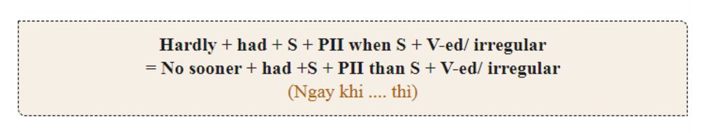 Cấu trúc: No sooner had + S1 + V1 + than + S2 + V2