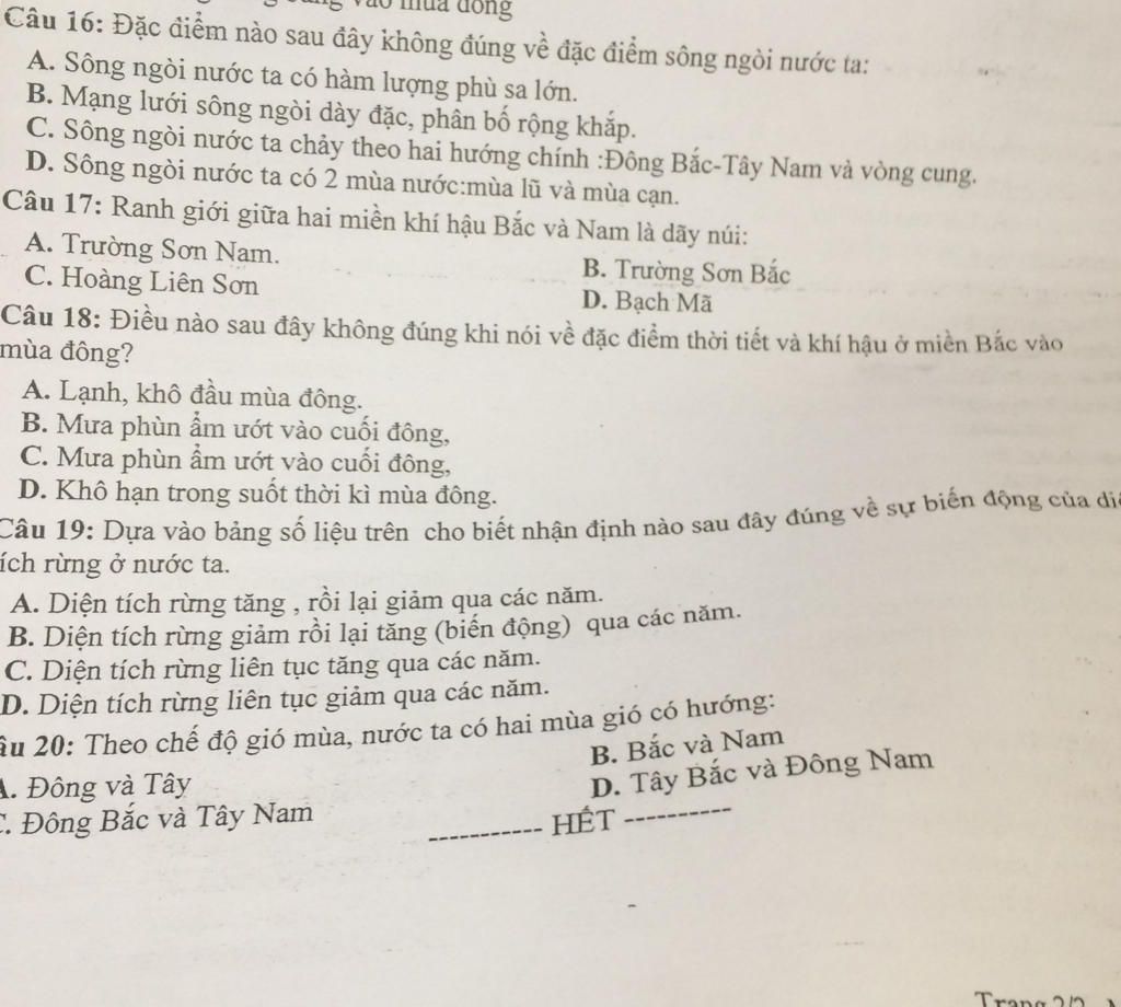 Câu 16: Đặc điểm nào sau đây không đúng về đặc điểm sông ngòi nước ta: