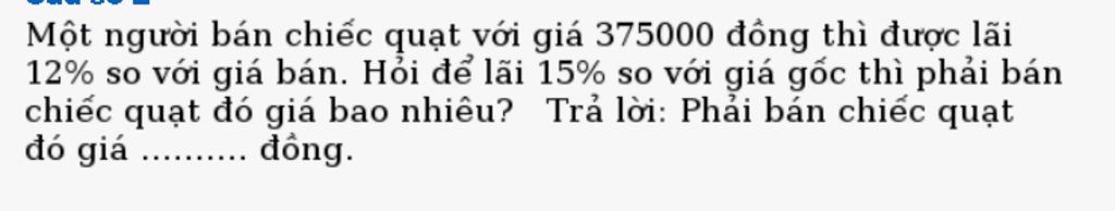 Để lãi 15% so với giá gốc thì phải bán chiếc quạt đó là: