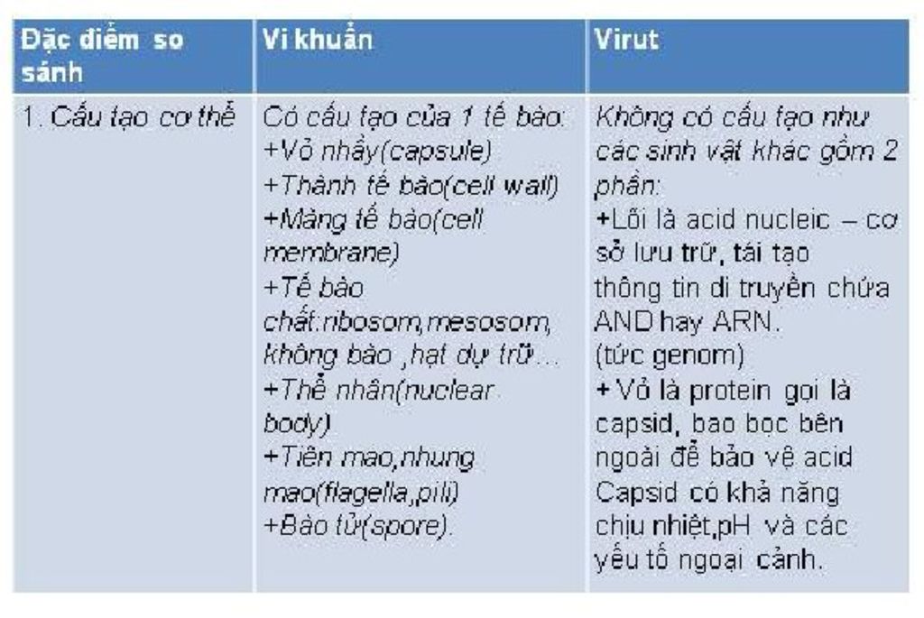 Đáp án:virut và vi khuản giống và khác nhau ở điểm