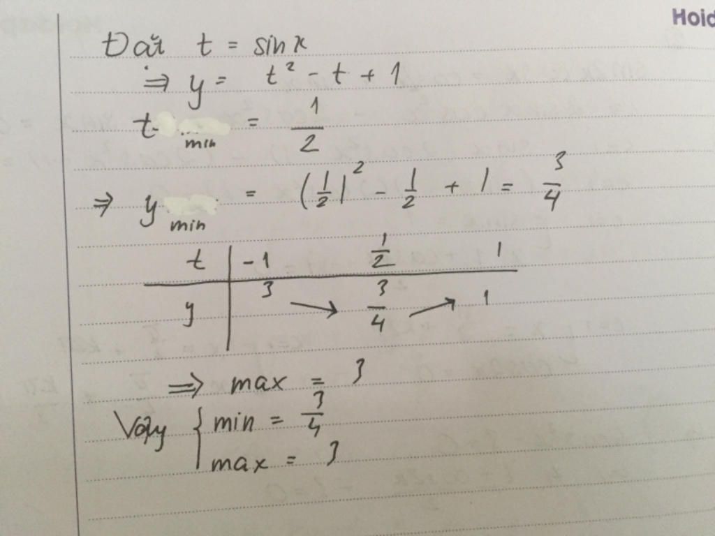 Giải thích các bước giải: Đặt y : sin^2 x - sin x +1 =0
