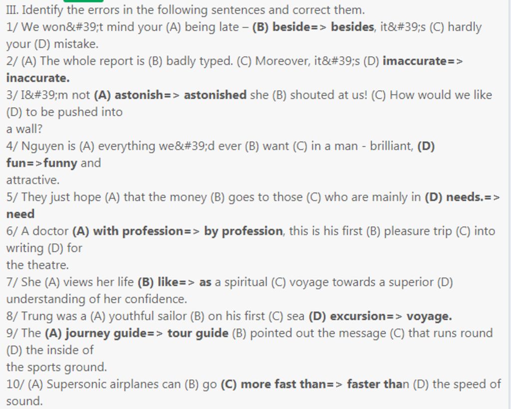 9/ (A) journey guide → tour guide ; 10/ (C) more fast than → faster than