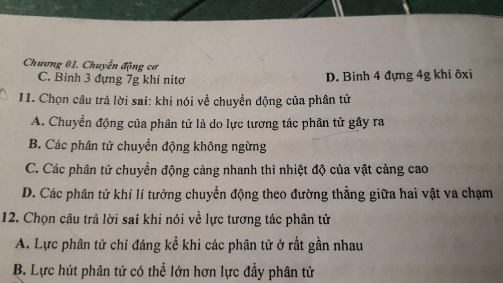 D. Các phân tử khí lí tưởng chuyển động theo đường thẳng giữa 2 vật va chạm