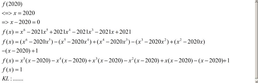 $\Leftrightarrow f(x)=x^{5}(x-2020)-x^{4}(x-2020)+x^{3}(x-2020)-x^{2}(x-2020)+x(x-2020)-(x-2020)+1$