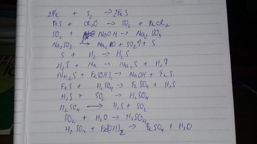 a)Fe----FeS----SO2----Na2SO3----S-----H2S-----Na2S-----FeS----H2S----H2SO4-----H2-----H2S----SO2-----H2SO4----FeSO4