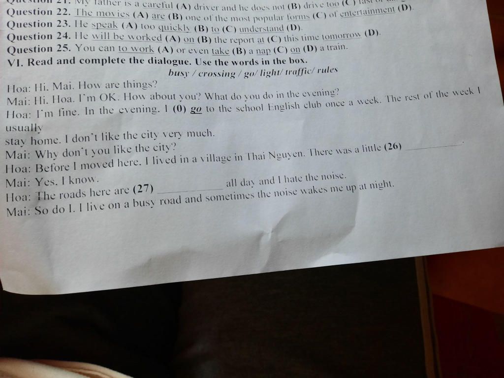 Question 23. le speak (A) too quickls (B) to (C) understand (D).
