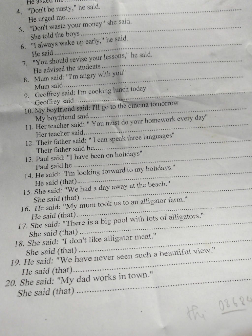 15)she said that she had had a day away at the beach (Qúa khứ hoàn thành chứ k phải lặp từ nhé )