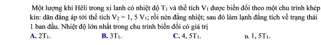 \[\frac{{{V_2}}}{{{T_2}}} = \frac{{{V_1}}}{{{T_1}}} \Leftrightarrow \frac{{1,5{V_1}}}{{{T_2}}} = \frac{{{V_1}}}{{{T_1}}} \Rightarrow {T_2} = 1,5{T_1}\]