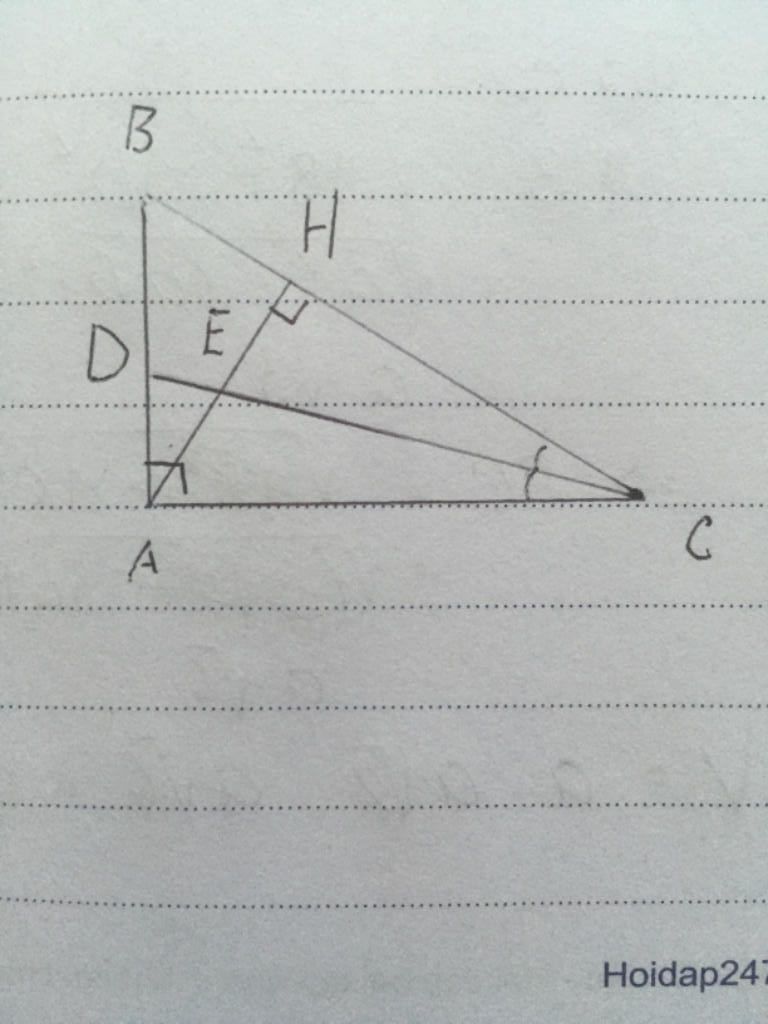 $\widehat{ACD}=\widehat{HCE}$ (vì AD là tia phân giác của $\widehat{ACB})$
