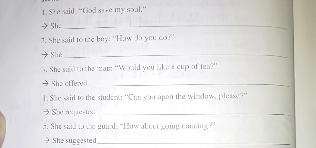 4. She requested the student to open the window.