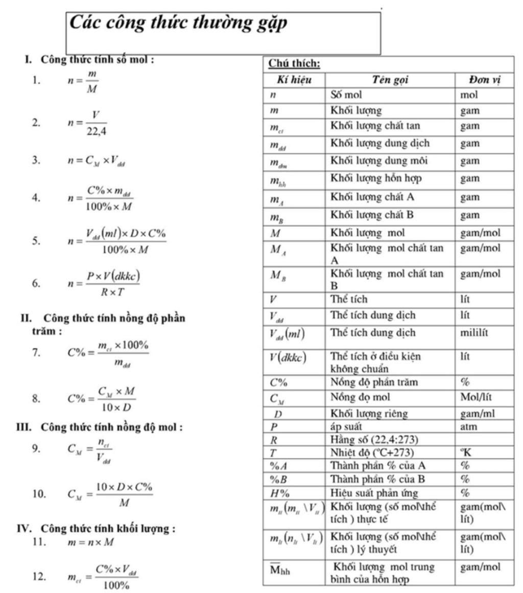 hoặc n=$\frac{V}{24}$ (đối với chất khí đo ở đkt)