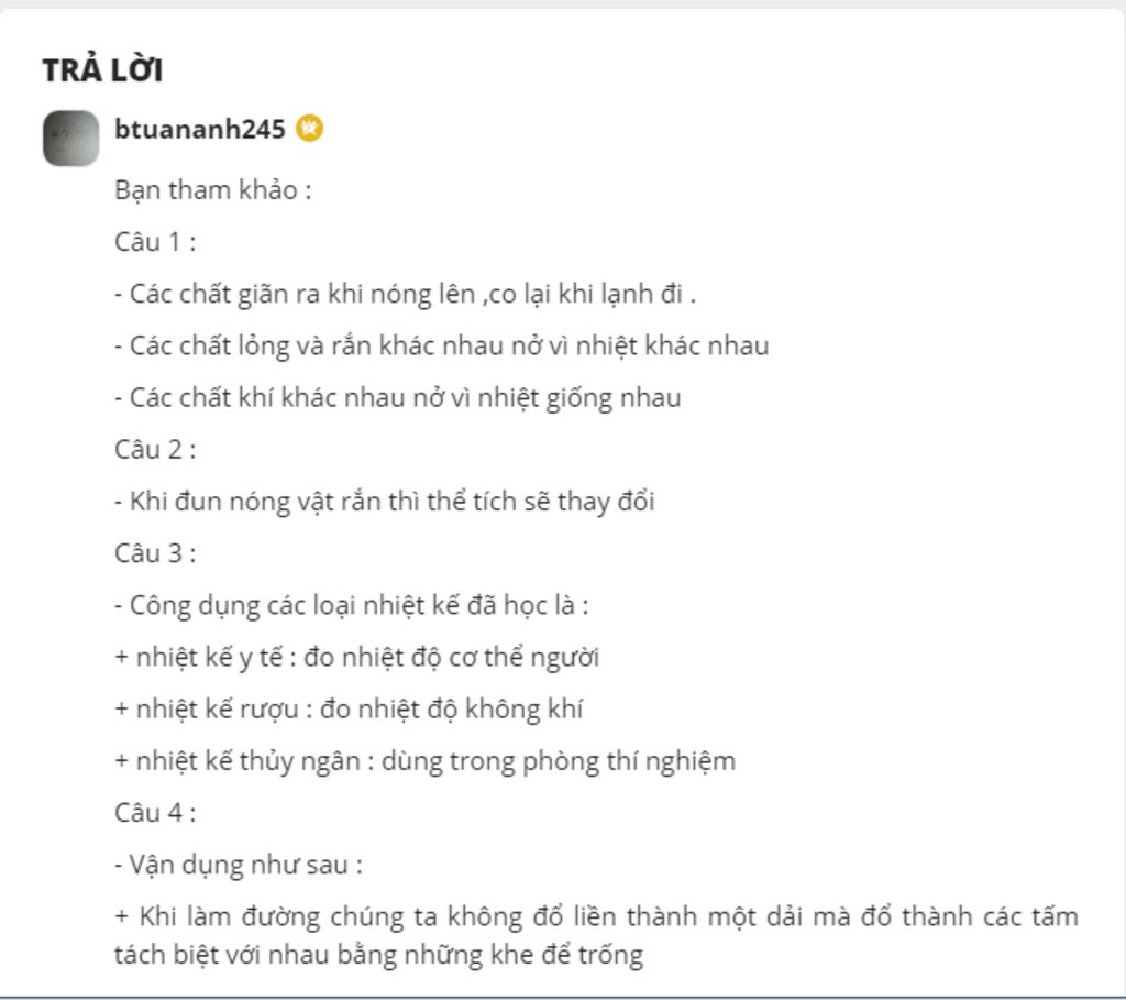 chất khí nở vì nhiệt nhiều hơn chất lỏng, chất lỏng nở vì nhiệt nhiều hơn chất rắn