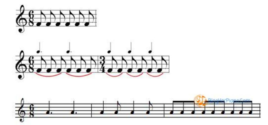 - Nhịp 6/8 là nhịp gồm 6 phách trong mỗi ô nhịp, mỗi phách bằng 1 nốt móc đơn. Phách 1 là phách mạnh, phách thứ 2 và thứ 3 là phách nhẹ, phách thứ 4 mạnh vừa, phách thứ 5 và thứ 6 là phách nhẹ.