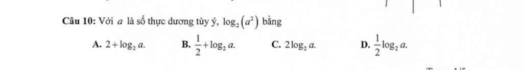 $\log_2(a^2) = \log_2(a.a) = \log_2 a + \log_2 a = 2\log_2 a$.