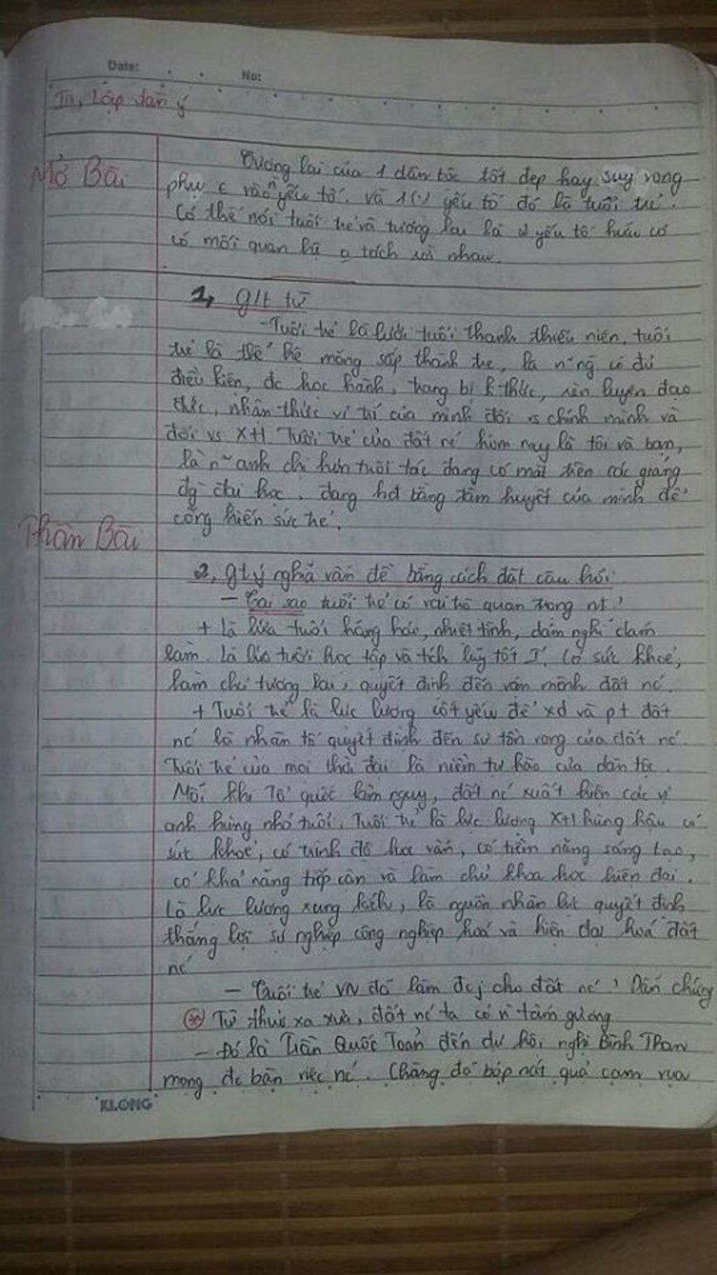 Tóm lại, tuổi trẻ là người sẽ quyết định tương lai đất nước sau này. Tuổi trẻ nước ta đầy rẫy nhân tài sẽ góp phần cho dáng hình xứ sở. Ngay từ hôm nay, tôi, bạn và tất cả mọi người phải cố gắng học tập để sau này có thể giúp nước ta tiến nhanh trên con đường xây dựng và phát triển nước Việt Nam ngày càng giàu mạnh.