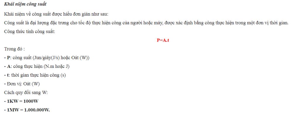 => Công suất được xđịnh = công thực hiện đc trong 1 đơn vị thời gian