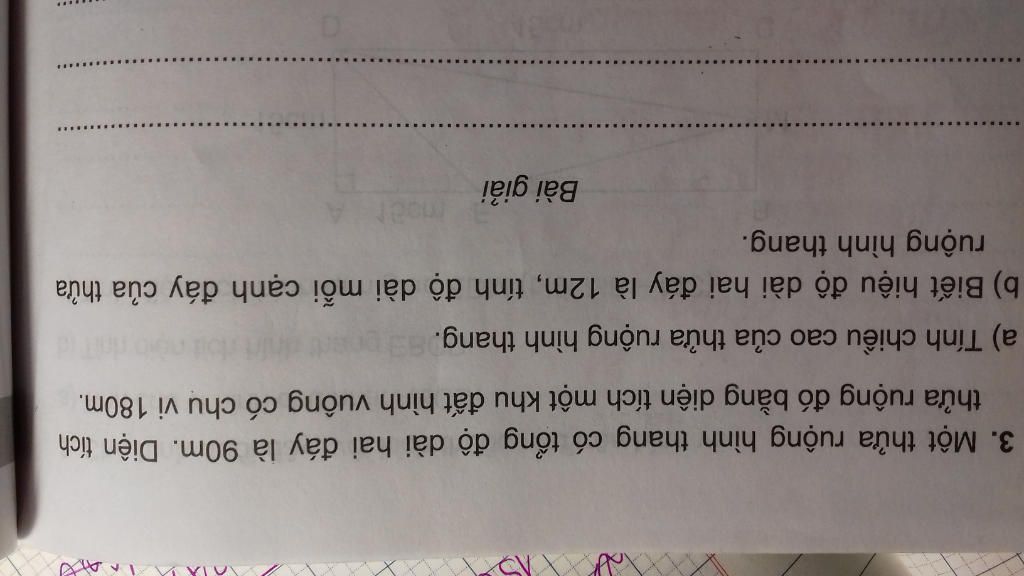 a)Chiều cao của thửa ruộng hình thang là: