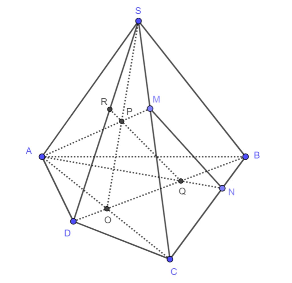 Lại có $P \in (AMN)$ và $P \in (SBD)$.