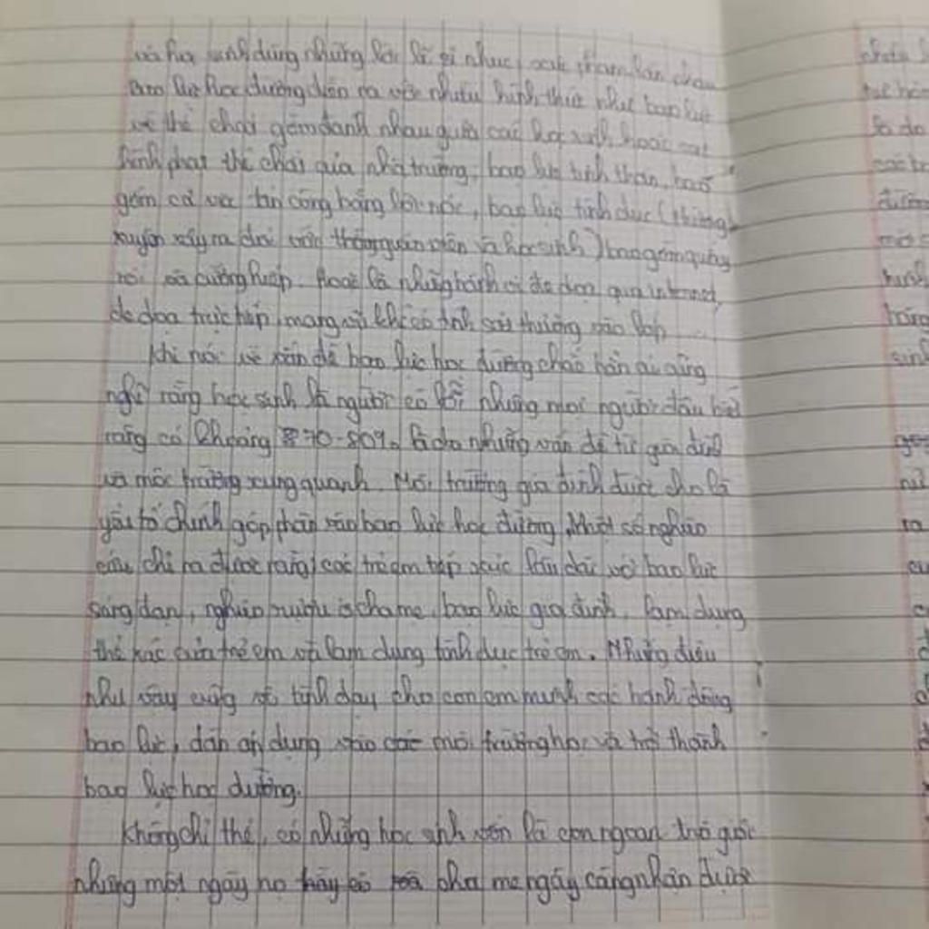 Tuổi học trò luôn là khoảng thời gian tươi đẹp nhất trong cuộc đời của mỗi con người. Thế nhưng, có một vấn nạn đang xảy ra và ngày càng gây ra những ảnh hưởng tiêu cực trong cộng đồng hiện nay chính là nạn bạo lực học đường. Đây là một vấn đề vô cùng nhức nhối và cần có nhiều biện pháp để khắc phục, trả lại môi trường học đường trong sáng, lành mạnh cho học sinh, sinh viên.