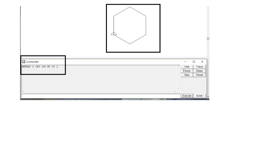 `=>` Đáp án: repeat 6 [ fd 100 rt 60 ]