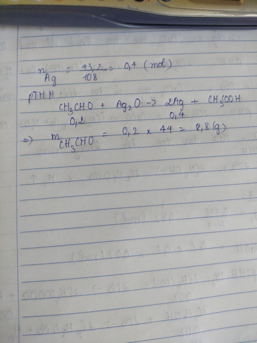 $\to {m_{C{H_3}CHO}} = 0,2.44 = 8,8\,\,g $
