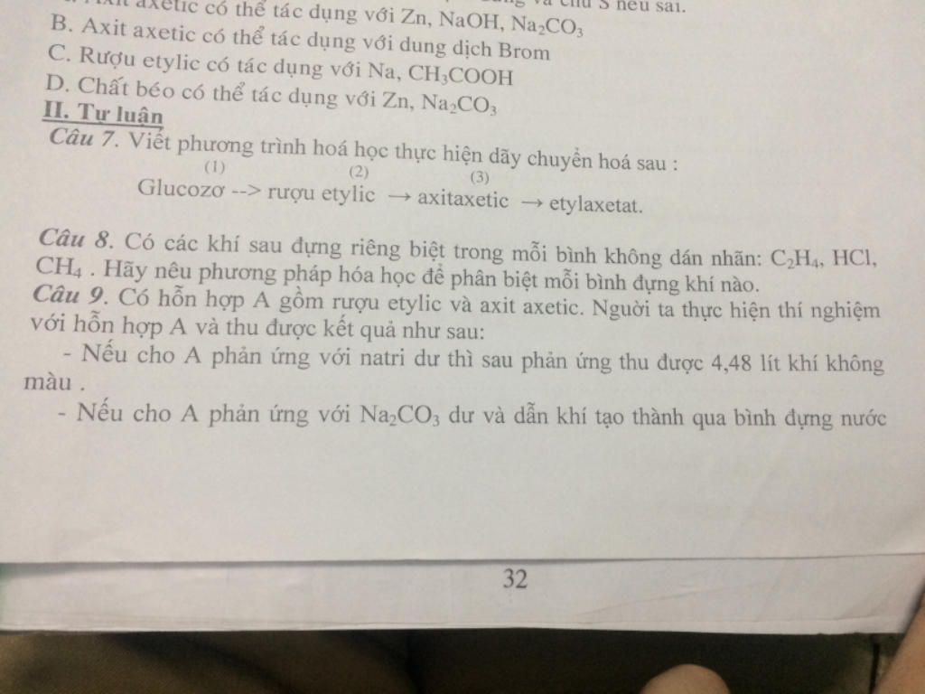 - Quỳ tím không đổi màu là $CH_4$ và $C_2H_4$