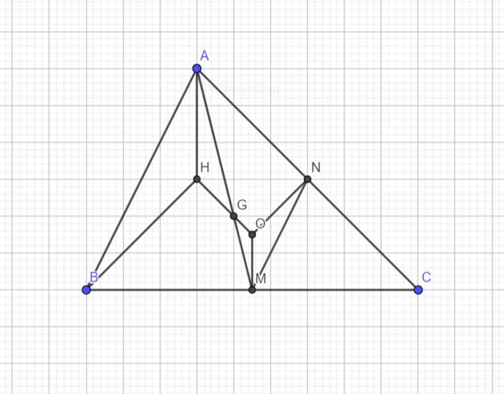 $\to \dfrac{OM}{AH}=\dfrac{MN}{AB}=\dfrac12$ vì $MN$ là đường trung bình $\Delta ABC$