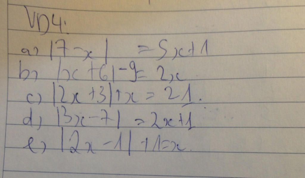 d)|3x-7|=2x+1 (x$\geq$-0,5)