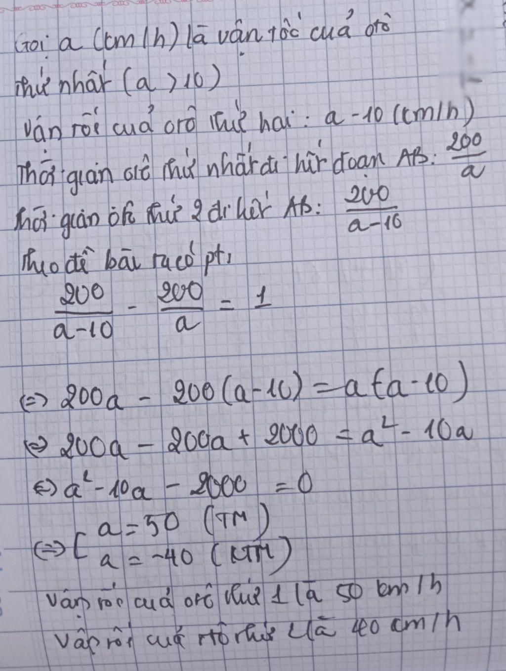 Thời gian xe ô tô thứ hai đi từ A đến B là: 200/(x -10)