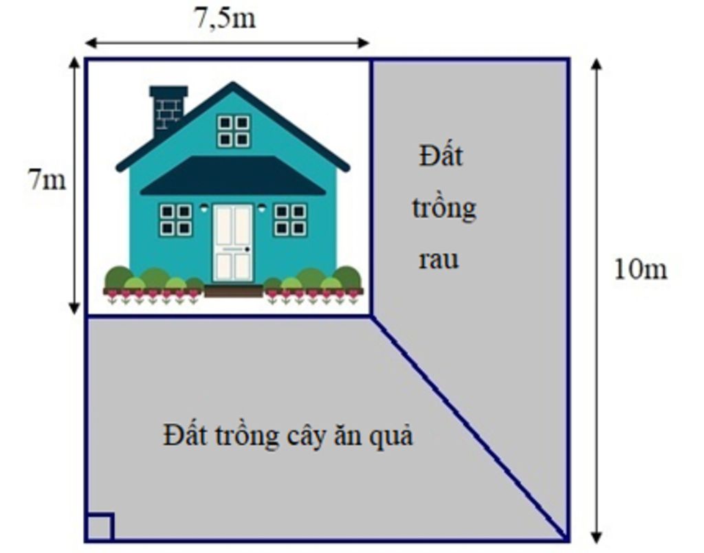 Mảnh đất trồng cây ăn quả là hình bình hành có đấy nhỏ dài 7,5m; đáy lớn là 10m.